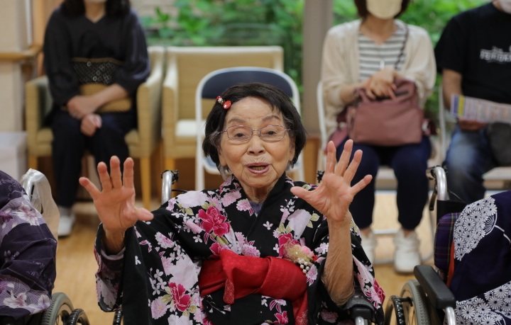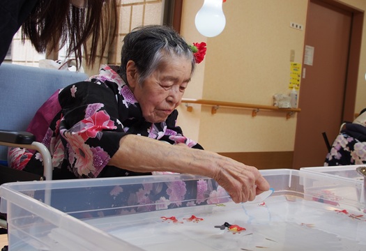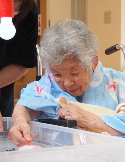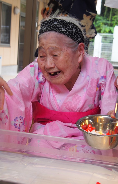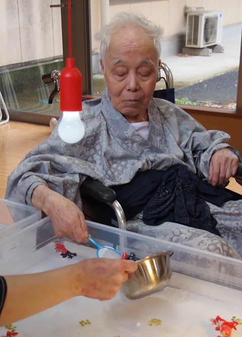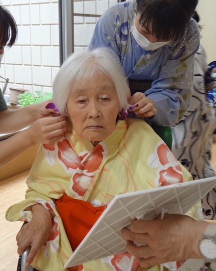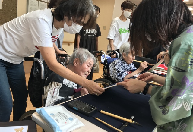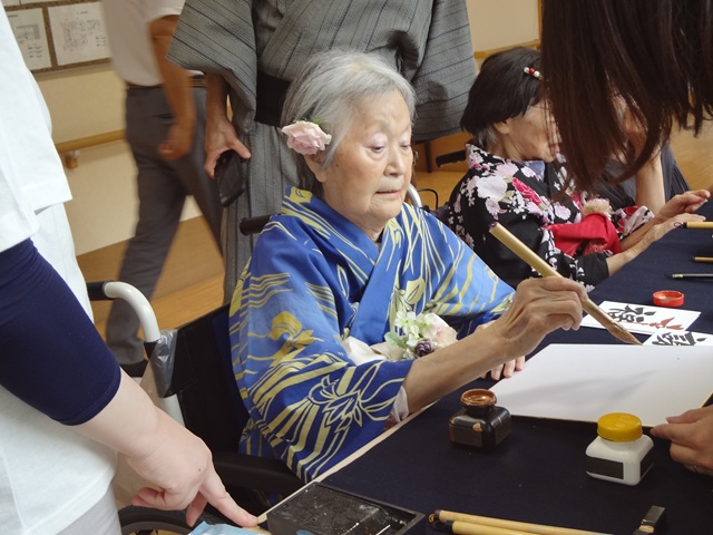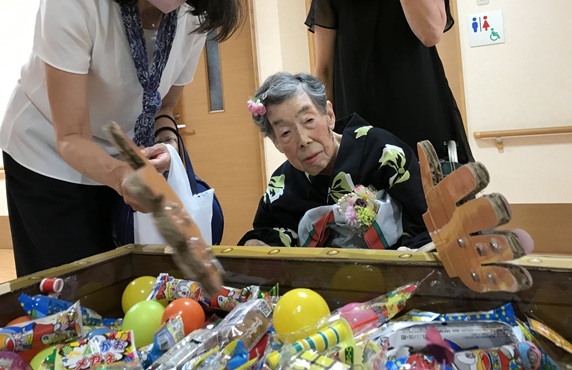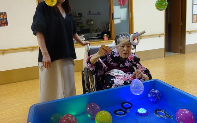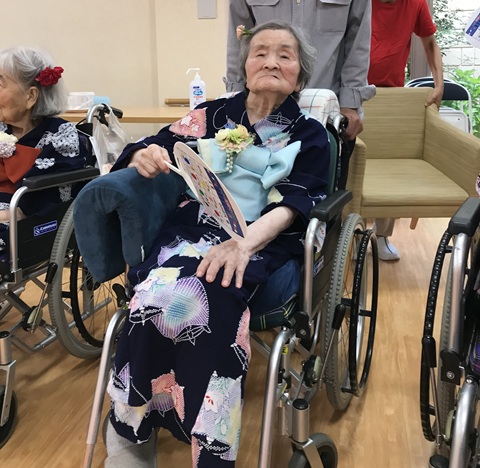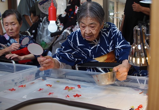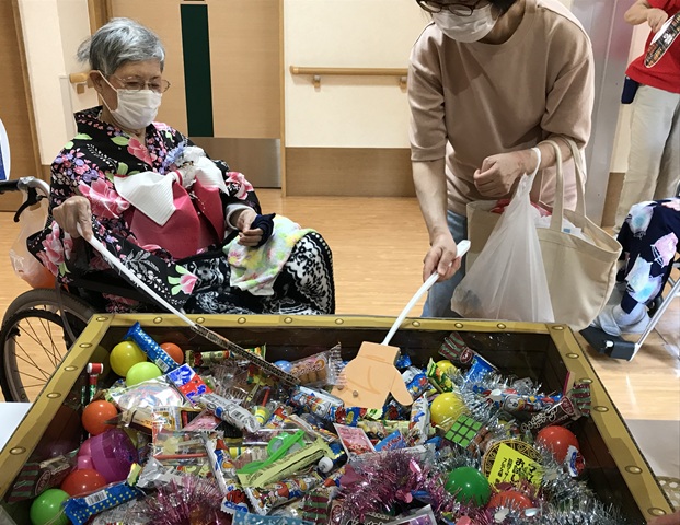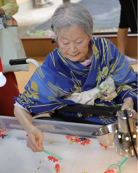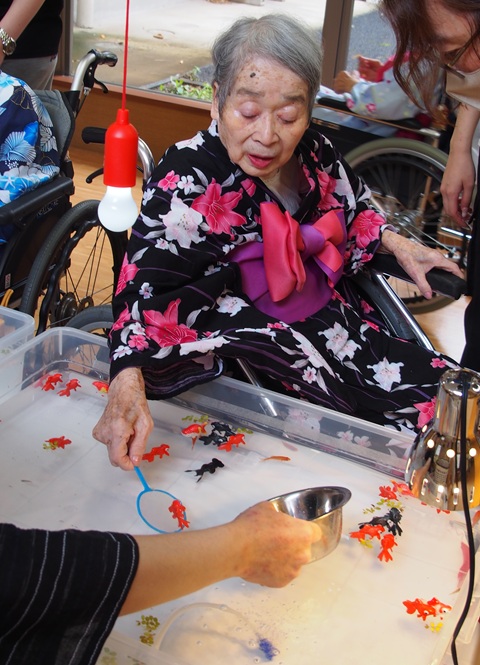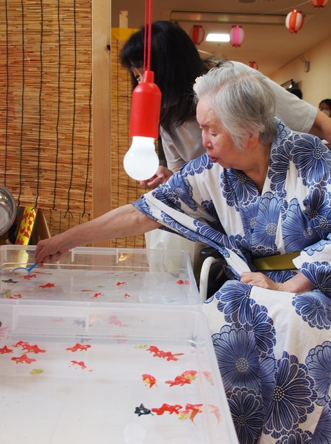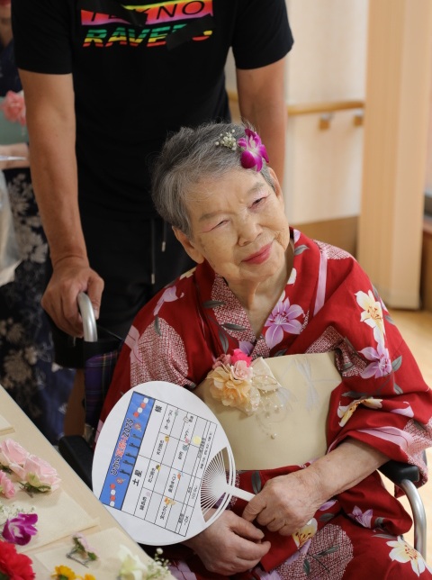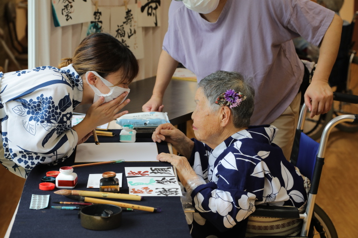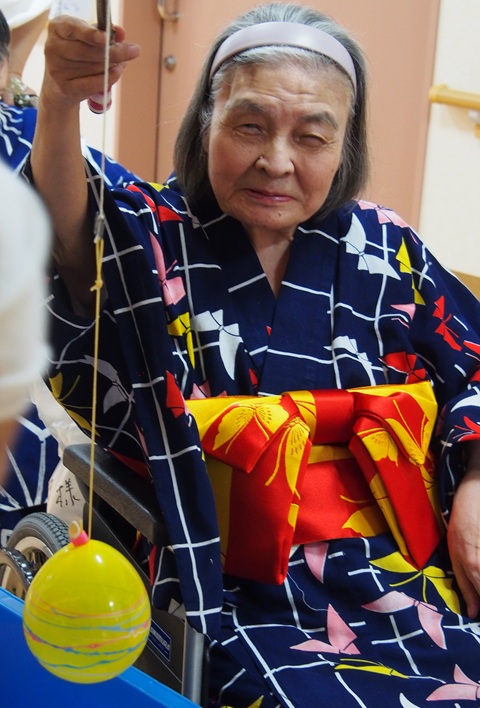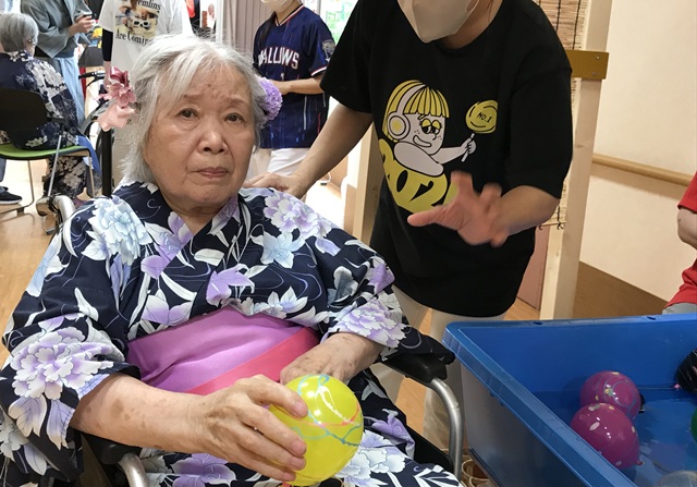 7月16日に開催した夏祭りの様子を報告致します。今年も昨年同様、感染に注意しながらご家族を招いて盛大に行いました。昔を思い出し、ご家族と一緒にお祭りを楽しんでいただきました。参加いただいたご家族の皆様、ありがとうございました。また、今年はボランティアの方をお呼びし、お祭りに参加していただきました。参加いただいたボランティアの方々、ありがとうございました。
