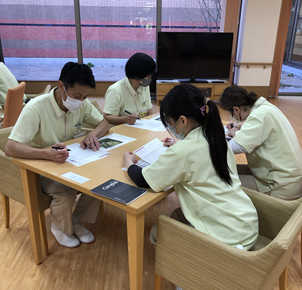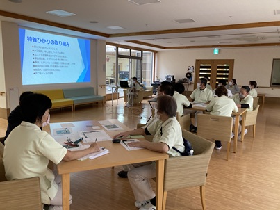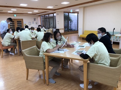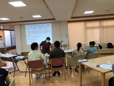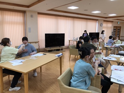 安全委員が講師となり、ヒヤリハットや気づきノートの意味や必要性などの座学。グループワークでは、外出レク時のKYT(危険予知訓練)を行い、他者の視点や気づきの大切さを学びました。